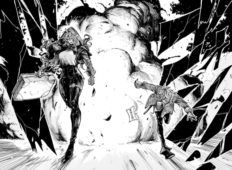 El primer capítulo acaba con Grimm proponiéndole a Velou que se una al Gremio de Cazadores tras salvar a su pueblo. Hasta aquí todo bien. Después tenemos tres capítulos en los que se pone a prueba (otra vez) al protagonista para que se una al gremio, para ello deben derrotar a dos lobos de poca monta que siguen por el pueblo para salvarlo (sí, otra vez). Desde el principio sabemos que les van a derrotar, así que lo que en realidad importa aquí al lector es el cómo. Y creo que es en este punto que el autor empieza a hacer un poco de trampa.