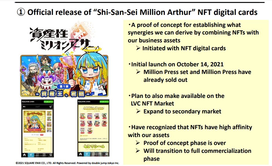Para sorpresa de nadie y como introducía al inicio, a principios de semana se confirmaba que compañías como Square Enix o Ubisoft estaban pensando en introducir esta tecnología en sus propias producciones de aquí en adelante, llegando incluso a tildarlas como el «futuro» de la industria. La creación de assets que utilizan las criptomonedas y el blockchain para dar contenido exclusivo en el juego a los compradores, que pueden intercambiarse y venderse por dinero real entre jugadores o en el propio mercado NFT. Square Enix, de hecho, ya ha realizado una prueba de fuego con este NFT Gaming en uno de sus títulos gacha; Shi-San-Sei Million Arthur.