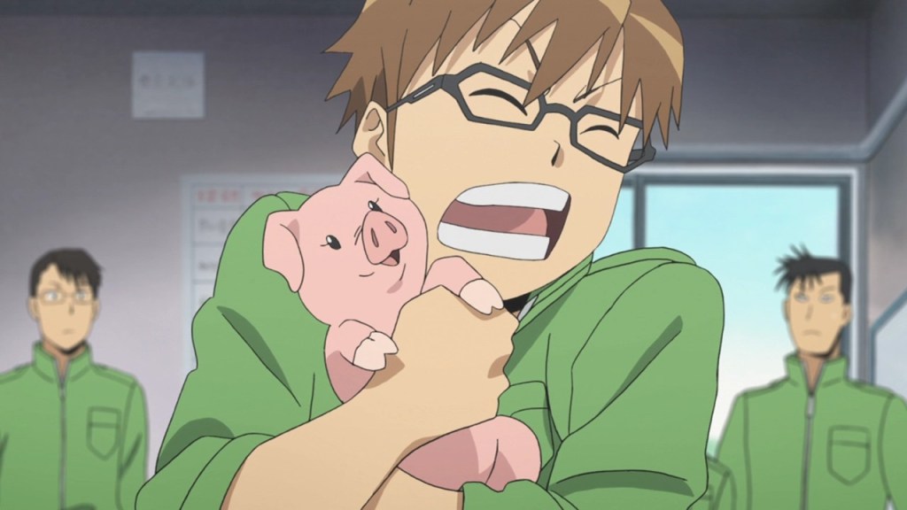Entre los casos con conclusiones del debate eminentemente negativas están cosas como Silver Spoon, escrita y dibujada por Hiromu Arakawa, autora también de Fullmetal Alchemist, que funciona a modo de romantización tradicionalista e idealizada de la vida en el campo y el trabajo en la granja. Si bien al comienzo el protagonista muestra su incomodidad con el sacrificio de los animales a los que potencialmente podría tenerles cariño, como los pollos que pueblan el corral, la serie se posiciona muy pronto desde una visión un tanto extravagante sobre la “muerte significativa” o “con digno respeto” y se sube muy rápidamente al vagón de la perspectiva capitalista de la casi obligatoriedad de producción de alimentos variados como ciclo vital en el que tomamos parte nosotros y ellos. Como un mal necesario e inevitable.