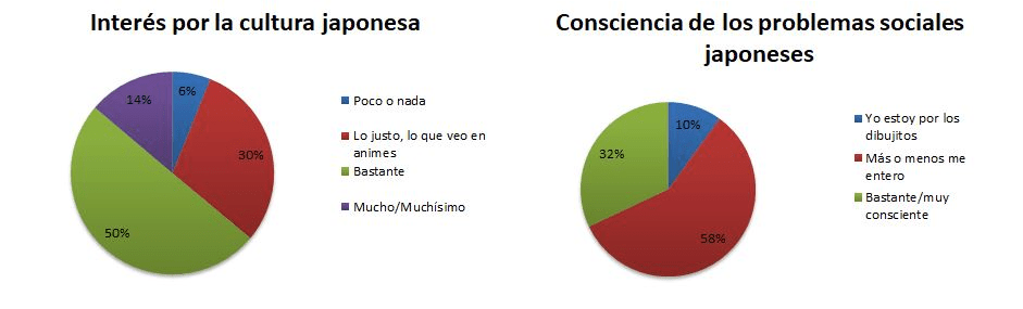 Dejo las respuestas a las dos últimas preguntas directamente como gráfico. Personalmente, quien esto suscribe considera esto una sorpresa para bien, no esperaba una concienciación tan alta sobre los problemas sociales de la sociedad nipona, cosa que daría —y probablemente dará— para un artículo propio.