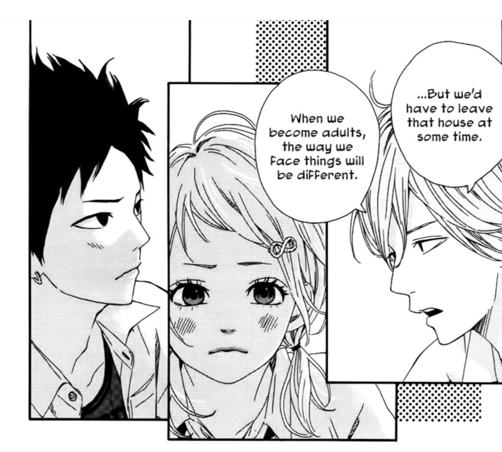 La casa donde viven los cuatro inquilinos es, al final, el lugar donde pueden permitirse soñar. Cuando salgan de allí, cuando “crezcan” —como ellos dicen—, será el momento de la verdad, la prueba de fuego: cumplir sus sueños o tener que abandonarlos. La casa es, además, su refugio. Allí pueden enamorarse, equivocarse y crear nuevos recuerdos juntos. Es el lugar seguro de todos; incluso de Taiga, aunque él no sea consciente. Da igual la edad que tengan, en esa casa todo el mundo tiene derecho a soñar y hacer todo lo posible por cumplirlo. Es el refugio que ellos, y quizás hasta nosotros en más de un punto de nuestra vida, necesitan. Porque, al final, de eso trata la vida: de soñar.