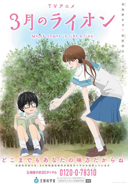 Estas campañas de prevención no sólo se han centrado en la salud física, sino también en la salud mental de los japoneses. Una de las más importantes fue la campaña contra el bullying realizada en el año 2017 por el Ministerio de Educación, Cultura, Deportes, Ciencia y Tecnología de Japón —comúnmente conocido con las siglas MEXT— en colaboración con el anime de Sangatsu no Lion, la obra de Chika Umino que contaba en su segunda temporada con un arco donde se centraba en el acoso escolar. Este proyecto no sólo se centró en la realización de diversos pósteres con el número de atención creado por el MEXT para estos casos, sino que dio paso a su vez a una serie de debates respecto al papel del profesorado y de las familias a la hora de tratar este tipo de situaciones.