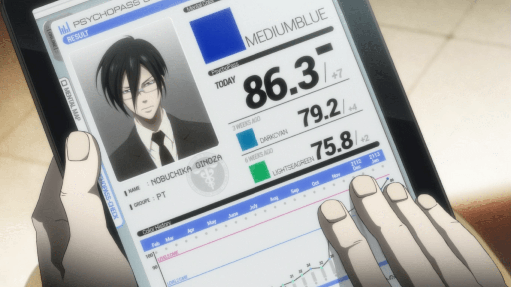 El determinismo psíquico, partiendo de tesis psicoanalistas, establece que todo fenómeno viene prestablecido no por el libre albedrío, sino por un amplio rango de condicionamientos producto de la herencia genética, la educación y la personalidad del individuo. Bien, Psycho-Pass nos presenta así una sociedad distópica en la que impera el condicionamiento coercitivo mediante un control exhaustivo de la psique de cada individuo desde que nace hasta que muere. Así, a cada persona se le asignan una serie de salidas laborales en base a sus aptitudes psíquicas, minimizando su capacidad de decisión, o a las probabilidades de perder los estribos e incluso convertirse en una amenaza potencial. Así, a aquellos con un medidor de Psycho-Pass más oscuro o turbulento, ejemplificado mediante colores, les es vetado el acceso a ciertos ámbitos del mundo laboral, incluso si jamás han obrado mala acción alguna. Son los denominados criminales latentes.