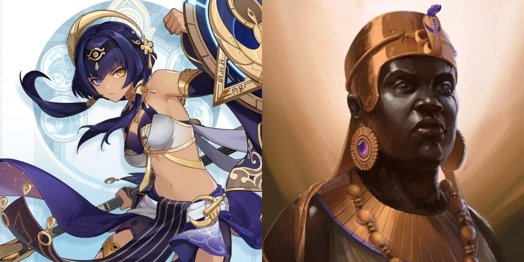 No son las únicas; Candace basa su nombre en las Kandake de la cultura nubia, reinas del pueblo que tenían un tono de piel oscuro y que, por supuesto, en Genshin es un clarísimo ejemplo de whitewashing. Resulta bastante curioso que los personajes jugables jamás pasen de tener la piel un poco bronceada pero sí haya varios ladrones del desierto, que funcionan como enemigos, con colores de piel más oscuros, aunque tampoco nos sorprende, porque su historial con este tema en otros juegos tampoco es que fuese especialmente estelar.