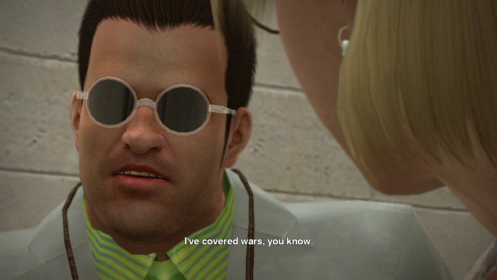 Frank del primer juego de la franquicia es quizá la versión más redonda del personaje. Posteriormente, Capcom decidiría convertirle en sus apariciones en la saga en alguien que se siente como un personaje diferente en cada juego, pero el primero es el equilibrio perfecto entre lo genérico y lo especial. Pequeños detalles como el de Frank cojeando al correr durante todo el juego porque al principio del mismo salta desde muy alto le definen como un personaje con quién simpatizamos por sus momentos de poca lucidez, que no opacan la diversión que tanto él como nosotros tenemos mientras persigue la exclusiva. Será egocéntrico y seco, pero también un superviviente de centro comercial excelente y fotógrafo de acción extraordinario. Todos estos elementos en choque con los otros personajes y el Willamette Parkview Mall sacan brillo a lo divertido que es Frank. Además, ha cubierto guerras ¿sabes?