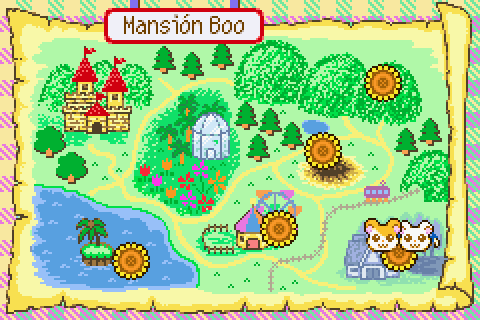 El juego nos llevará por seis escenarios distintos, donde viviremos distintas aventuras y diferentes parejas nos necesitarán para resolver sus malentendidos y recuperar el amor perdido a manos de Diablito. Los lugares son bastantes variados entre sí: comenzamos en Pico Sol, una zona tranquilita con su río y un sistema de túneles laberíntico para pasar a Cala Dorada, que como el nombre implica, es una playa tropical. El siguiente destino que nos espera es Divertiland, un parque de atracciones —una de las zonas favoritas de muchos jugadores—, continuando con la Mansión Boo —zona un poco traumática para los más jóvenes, por experiencia personal— y llegando poco después a la Jungla. Por último, nuestra aventura contra Diablito acabará en Torre Vil.