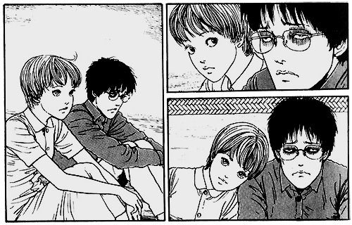 Sin entrar en terreno de spoilers, Uzumaki, de Junji Itō, trata de la pareja formada por Kirie Goshima y Shuichi Saito, habitantes del pequeño pueblo de Kurouzu-cho, en el que cosas extrañas relacionadas con espirales empiezan a suceder. El elemento que nos interesa aquí es el incremento en lo extraño y lo fuera de lo común según va avanzando la obra. A cada capítulo pasa algo de mayor magnitud en el pueblo y obviamente nuestros protagonistas reaccionan horrorizados, pero suelen hacerlo de manera muy tardía o incluso desechan lo terrible que ha sucedido un día en pos de lo que pase en el siguiente, con lo que volvemos a la idea del protagonista de terror atado a la historia hasta alcanzar el destino de la misma, pero apoyada esta vez en un formato más antológico: En cada capítulo lo que sucede es distinto, pero Kirie y Shuichi nos acompañan y nosotros a ellos. El empatizar con un protagonista es común al leer, ver o jugar a algo, pero en este caso tenemos el conocimiento de la naturaleza de las obras de terror, y esa empatía se convierte en preocupación.