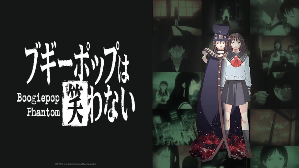 Tanto a finales del pasado siglo como a principios del presente, MadHouse era un estudio pionero a la hora de abordar obras ambiciosas y que se salían del marco de las modas —Perfect Blue, Texhnolyze, Millennium Actress…— pero no sería osado argumentar que Boogiepop fue la más extraña de todas. Basada en las novelas homónimas de Kōhei Kadono, este anime se erige como un thriller sobrenatural con asesinatos, desapariciones y numerosos misterios a resolver. La oscura ciudad como escenario inmutable de una obra en constante evolución. Una simple y aparentemente inconexa leyenda urbana escolar sobre la aparición de unos pilares de luz y su posible relación con una fantasma que se manifiesta ante los condenados que se convierte progresivamente en una trama cuidadosamente entrelazada sobre la evolución humana, la aceptación de la pérdida y el peso de la memoria, la culpa y el dolor en nuestra conciencia.