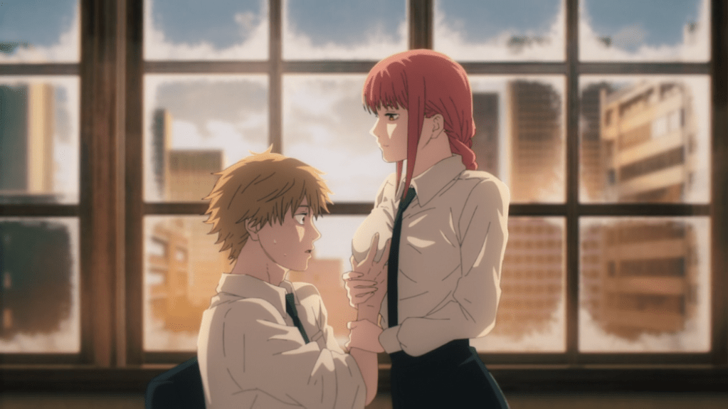 Mientras tanto, Makima representa esa figura de la dominatrix a la perfección, tan idealizada y reconocida en las corrientes pop. Makima es fría, pero, pese a parecer distante, sabe perfectamente cómo dar cancha y ofrecerte pequeños premios en ciertos puntos para que te sientas apreciado y recompensado. La primera comida que tiene con Denji define muchísimo a ambos personajes: Ramen barato. Para Denji, un manjar como nunca antes había probado y para ella, suficiente.