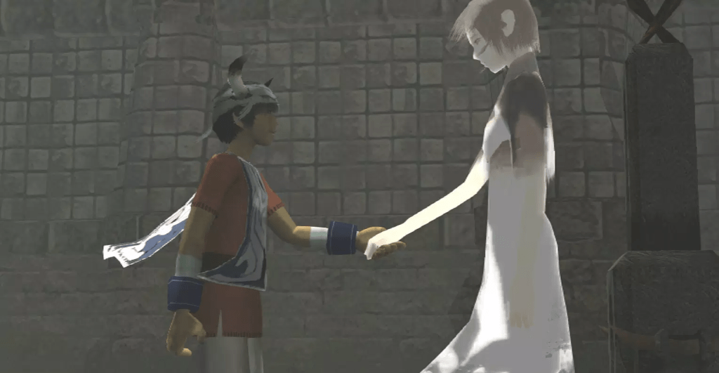 En Ico un gesto tan personal, íntimo y humano como es caminar tomados de la mano es necesario para guiar y proteger a Yorda, hay que ayudarla a sortear obstáculos o saltarlos. Ella, por su parte, es clave para abrir determinadas puertas y permitir el avance por el castillo.