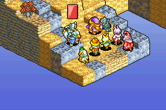 Final Fantasy Tactics Advance se ponía a la venta en Japón el 14 de febrero de 2004, siendo una entrega más desenfadada que tomaba las mecánicas del FFT original de PSX y las simplificaba para la pequeña pantalla de la Game Boy Advance de Nintendo. La historia nos ponía en el papel de Marche, un joven recién mudado al pequeño pueblo de San Ivalice que, junto a sus amigos Mewt y Ritz y su hermano Dóned, acabará transportado al interior de un grimorio mágico. Este isekai inesperado le llevará al mundo de Ivalice, donde deberá encontrar una forma de regresar a casa. La historia es tremendamente simple si la comparamos con las entregas del mundo que hemos visto hasta ahora; y en parte es una necesidad de simplificar la narrativa para su consumo en portátil y la búsqueda de la ampliación de la saga Tactics a un público más amplio. Sin embargo, hay dos elementos muy a tener en cuenta para su conexión con el resto de entregas de la obra de Matsuno; el Gran Grimoire y la introducción de las leyes y sus jueces.
