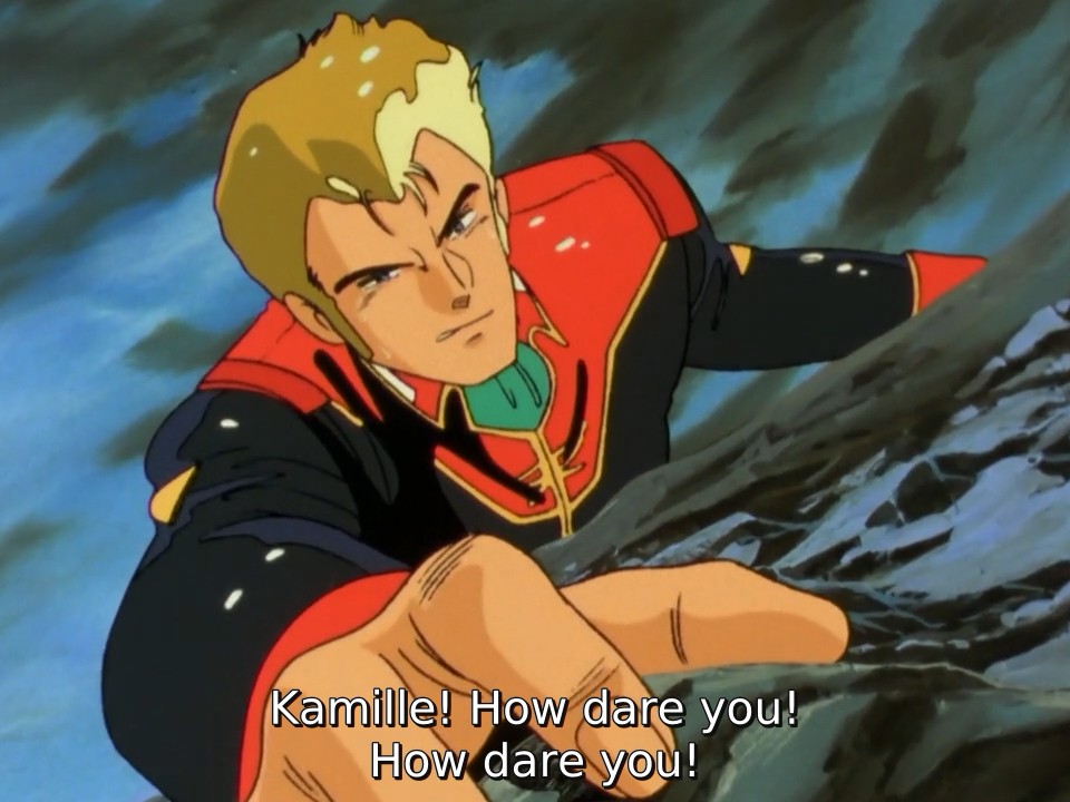 Mobile Suit Gundam, anterior a la serie que nos ocupa y como primera entrada de la franquicia, realizó un trabajo que resuena a día de hoy a la hora de hilar la rivalidad entre Char y Amuro. Puede parecer que Zeta Gundam intenta realizar la misma jugada con Jerid y Kamille y termina por fallar, voluntaria o involuntariamente, para acabar haciendo a Jerid un miserable obsesionado de manera unilateral con destruir a Kamille, a quien en un buen día le preguntarías por el propio Jerid y diría «¿quién?».