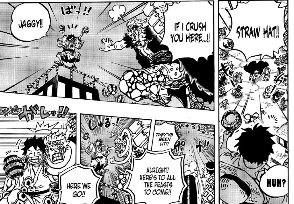 Y es que a Luffy parece darle absolutamente igual que Kid lo considere su rival —a no ser que este le incite a hacer alguna locura, como intentar aguantar hasta el último segundo antes de esquivar un ataque combinado de Kaido y Big Mom—. Esto tiene que ver con lo comentado un poco más arriba: Luffy considera que alguien que ha peleado junto a él para liberar un país entero merece celebrar esta victoria como buenos compañeros.
