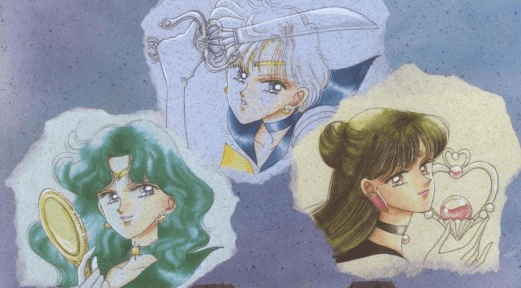 Primero tenemos la espada, que se llama Kusanagi no Tsurugi y simboliza el valor. Cuenta la leyenda que el dios Sunanoo, de camino a la provincia de Izumo se encontró con una familia. Esta le contó a la deidad que un monstruo llamado Yamata no Orochi había devorado a siete de sus ocho hijas e iba persiguiendo a la última, así que le rogaron que los ayudara. Susanoo decidió ir a investigar y se encontró con que Yamata no Orochi era una serpiente de ocho cabezas, sin embargo, no pudo derrotarla. Decidió retirarse y elaborar un plan para poder acabar con la criatura. Al volver donde la familia, el dios les pidió la mano de su última hija, a la que transformó temporalmente en un peine para sentir su presencia al luchar contra Yamata no Orochi. También les rogó que le ayudaran a construir ocho vasijas de sake que pondrían en plataformas individuales, cada una oculta detrás de la puerta. Cuando apareció la serpiente, esta mordió el anzuelo y metió cada una de sus cabezas por las puertas. Aprovechando este momento, el dios le atacó y cortó las ocho cabezas y colas por lo que al fin logró darle muerte. Al cortar la cuarta cola, se encontró con una espada, a la que llamó Murakumo no Tsurugi —que más tarde cambiaría su nombre a Kusanagi no Tsurugi— y se la entregó a la diosa Amaterasu para saldar una deuda que tenía con ella.