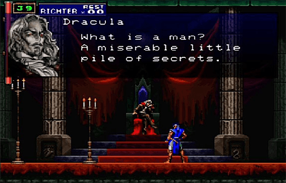 Ampliamente considerado como la joya dorada de la primera etapa de la saga, Rondo of Blood goza de una puesta en escena que quita el hipo: la música, los sprites y sus añejas cinemáticas elevan lo que suponía Castlevania en aquella época. En lo puramente jugable, el enfoque «regreso a las raíces» nos devuelve a los Classicvania más puros. Los niveles son algo más lineales —con alguna bifurcación, aunque no muchas— y algunas mecánicas de SCIV desaparecen en beneficio de una aproximación más directa del plataformas de acción. En su beneficio, los jefes son más épicos, complejos y juguetones que nunca. Richter tendría que esforzarse a fondo para superar este juego.