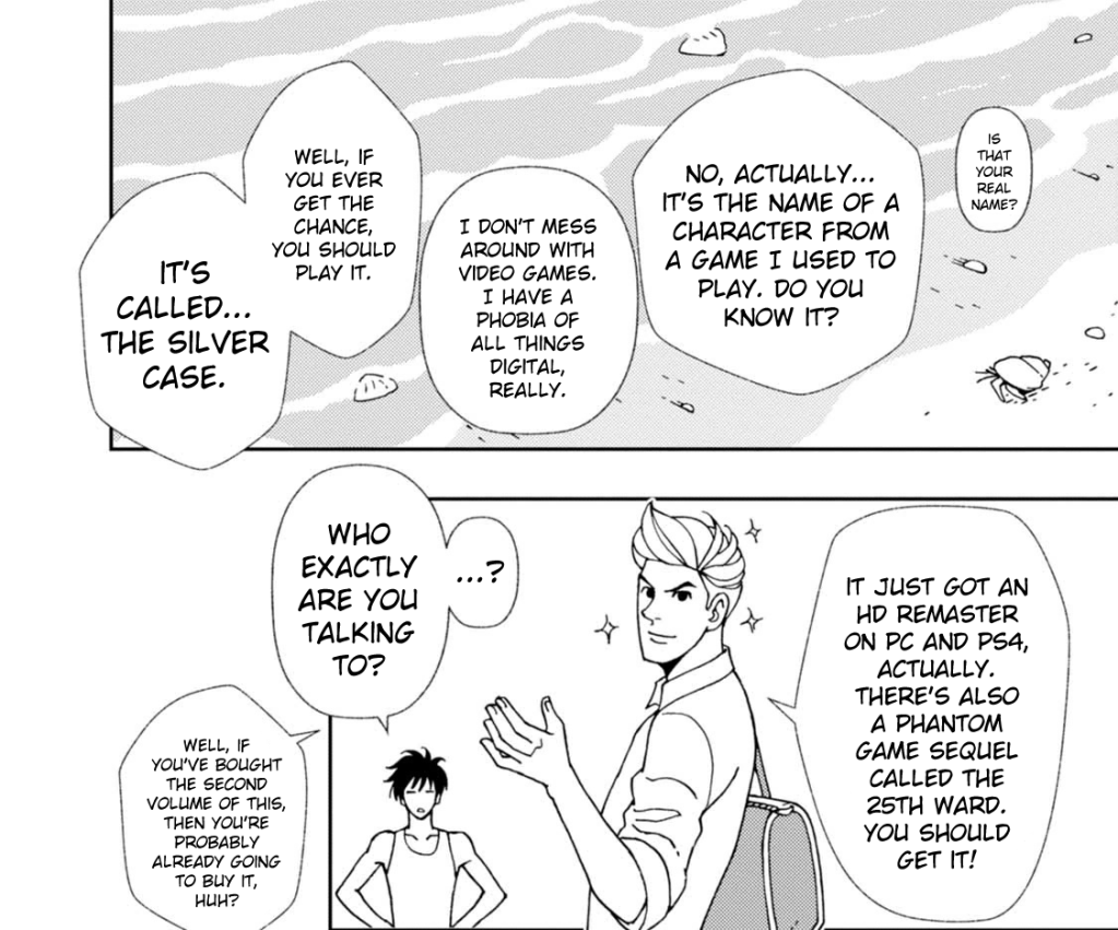 Resulta muy curioso cómo el efecto dominó de un CEO buscando el máximo beneficio económico desemboque en un manga completamente separado del tema. En cuanto a Grasshopper Manufacture, hace poco anunciaron una remasterización de Shadows of the Damned en la que, por voto en Twitter, se eligió que habría un traje de Wataru para Garcia Hotspur, protagonista del juego. Así que, aunque fuese creado bajo restricciones, la obra de alguien sigue siendo su obra para retomarla como busque, y alegra saber que vivimos en un mundo que tiene tanto a Wataru como a Garcia, testimonios de la importancia de la libertad creativa.