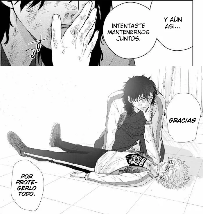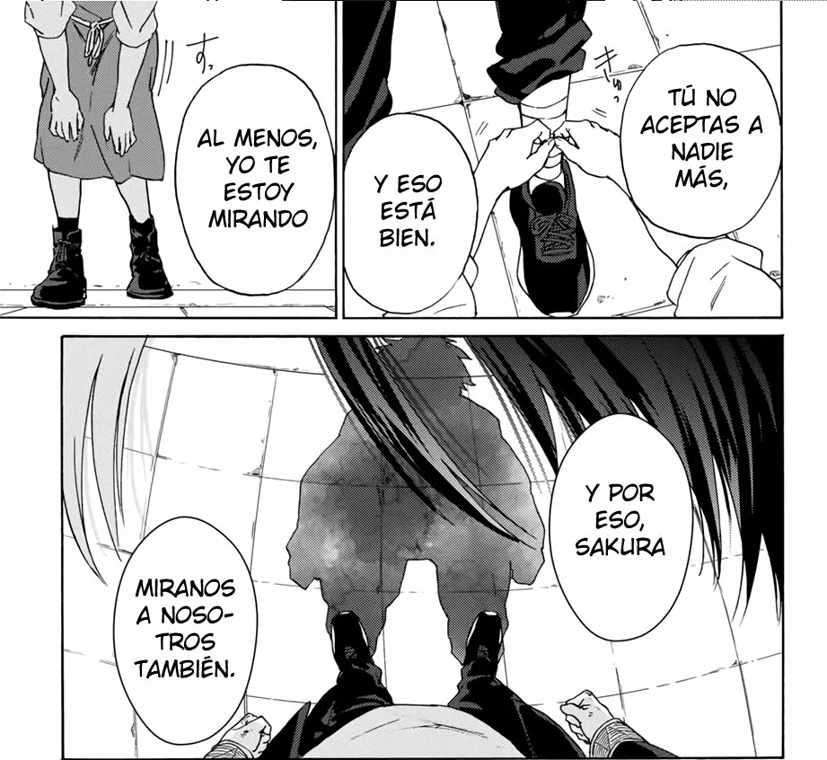 ¿Por qué me convertí en líder? Para que siempre pudiésemos comer todos juntos como ahora. Si todos son felices, si todos sonríen, puedo disfrutar la comida al máximo. Pensé mucho en cómo hacer eso realidad. Me convertí en líder porque ellos me eligieron. Porque simpatizaron conmigo y querían ayudarme a conseguir mi objetivo. Entonces, cuando me di cuenta, mi objetivo ya no era solo mío. Por ello, no importan las dificultades, si estoy rodeado o si todo parece perdido. Haré todo lo posible por hacerlo realidad.