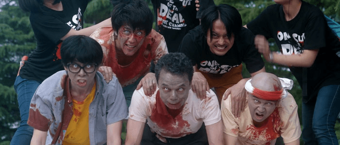 One Cut of the Dead es una producción de 2017 dirigida por el ya mencionado Shin’ichirô Ueda. No es un nombre especialmente conocido dentro del paradigma general de la filmografía de Japón. Y tampoco es que lo sean su productora o su distribuidora. Como dato curioso, podemos añadir que su esta última, Asmik Ace Entertaiment, está más dedicada a la distribución de videojuegos que a la de películas. Con todo esto, podemos asumir que One Cut of the Dead es una producción pequeña. De hecho, el coste fue de 3 millones de yenes, lo que sería el equivalente a 22.800 euros aproxidamente —acorde al cambio de aquellas fechas— Cabe decir que Ueda utilizó un crowdfunding para alcanzar su meta y llegar al presupuesto mencionado.