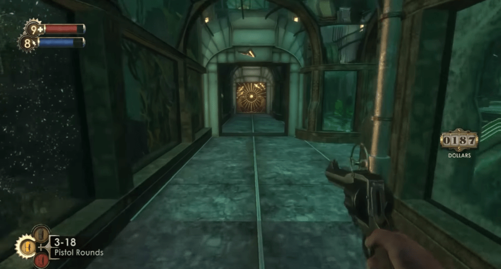 Tampoco es que esto sea algo reciente, el primer Bioshock tiene unos mapas muy bien diseñados que se recorren con fluidez y están repletos de indicaciones claras integradas con el escenario, como carteles, neones o el uso de la iluminación. Aún así, hay una flecha en la parte superior de la pantalla que indica constantemente la dirección del siguiente objetivo.