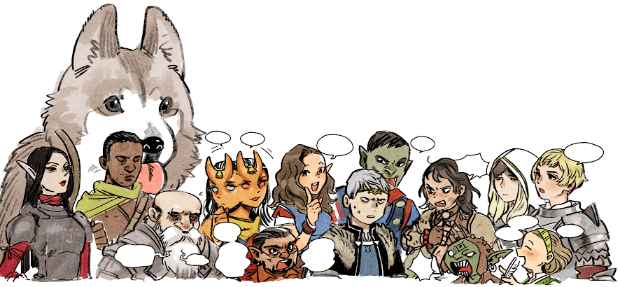 Con ver unos pocos episodios de Tragones y Mazmorras queda más que patente que la autora es fan no solo de la fantasía occidental, sino de los juegos de rol como Dungeons & Dragons y Pathfinder. De hecho, ha hecho una gran cantidad de ilustraciones de las adaptaciones a videojuego de estas franquicias como Kingmaker —la cual podéis justo encima de estas líneas— o Baldur’s Gate —cuya segunda entrega cuenta con un mod para usar las ilustraciones de la autora de los personajes en lugar de las que vienen por defecto—, por lo que la influencia de estas obras y de mundos como Faerûn y Golarion quedan más que patentes en su obra. El artículo de hoy, no obstante, no va a pormenorizar en los detalles de las influencias más directas de la obra, sino que vamos a presentar a los personajes que Kui ha creado para su obra con un enfoque algo distinto: vamos a analizar a los cuatro protagonistas como si fueran personajes de la quinta edición de Dungeons & Dragons, la versión más moderna de una de las grandes influencias de la autora, así como justificar sus clases, habilidades y dotes. Podréis encontrar las propias fichas de personaje al final de los párrafos dedicados a cada uno de ellos con un enlace a Nivel 20, donde podréis ver y descargar la ficha. No obstante, queremos hacer un par de clarificaciones. Primero: para poder representar todas las cualidades básicas de los personajes serán todos de tercer nivel —ya que es donde estos obtienen su subclase—; y segundo: como cualquier adaptación, hay muchas escenas y cualidades que es imposible representar con total dignidad, por lo que es imposible que sean fieles al 100%. Además, pueden no ser las fichas más óptimas para jugar, pero se han hecho de la manera más fiel posible. Sin más dilación, comenzamos.