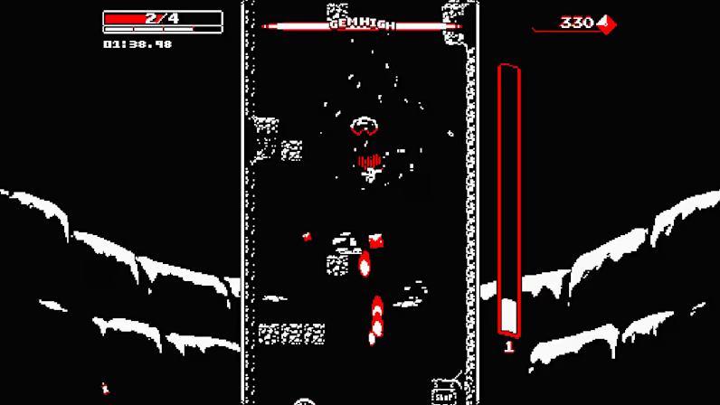 El 14 de octubre de 2015 publica en la Apple Store su opera prima, Downwell. Un plataformas que mezcla gran cantidad de elementos provenientes de grandes como Mario, Metroid o Spelunky —por mencionar algunos—, convirtiéndose en uno de los más grandes exponentes del género en el combo a base de encadenar saltos y sortear obstáculos, expandiendo esa idea de estar el máximo tiempo posible sin tocar el suelo y haciéndola parte integral de su diseño. En otros plataformas, esa idea nace de un desafío autoimpuesto, aquí es el núcleo de la experiencia. Cuando se interioriza, jugando tanto en consonancia como en consecuencia, Downwell desvela su verdadero rostro y su faceta más arcade con un diseño mondo y pulido hasta la extenuación. En el afán de Ojiro por hacerlo simple, con la interfaz más limpia posible y la menor cantidad de botones, solo hay tres opciones: izquierda, derecha y el botón de acción. Este último será el salto si se está en tierra y el disparo si se está en el aire. Velocidad y frenetismo empapan la experiencia de jugar con la parábola y la gravedad para llegar a los enemigos y esquivar las plataformas consiguiendo cada vez una mayor puntuación de combo. Hay recompensas que se pueden obtener al llegar a ciertas cifras, pero son lo que menos importa; la verdadera recompensa es el placer de aprovechar ese sistema y dominarlo. Se convierte en una sucesión de microdecisiones a tomar de forma constante y con escasísimo tiempo de reacción. A eso se suma la generación aleatoria de los niveles, haciendo que no se pueda usar la memoria pura para aprender qué hacer y cuándo hacerlo. De esta forma, de pocas mecánicas pero bien pensadas e integradas extrae un potencial inmenso lleno de posibilidades. Es un juego elegante en el que constantemente están en conflicto el poder y el control. ¿Es mejor disparar de lejos a enemigos para evitar el daño o reservar munición para mantenerse en el aire y acumular combo? ¿Usar un arma poderosa con pocas balas para causar mayor impacto o sacrificar potencia de tiro en pos de un mayor número de oportunidades para mantenerse en el aire? Un constante toma y daca entre el riesgo y la recompensa que da más al jugador cuanto más se le da a él.