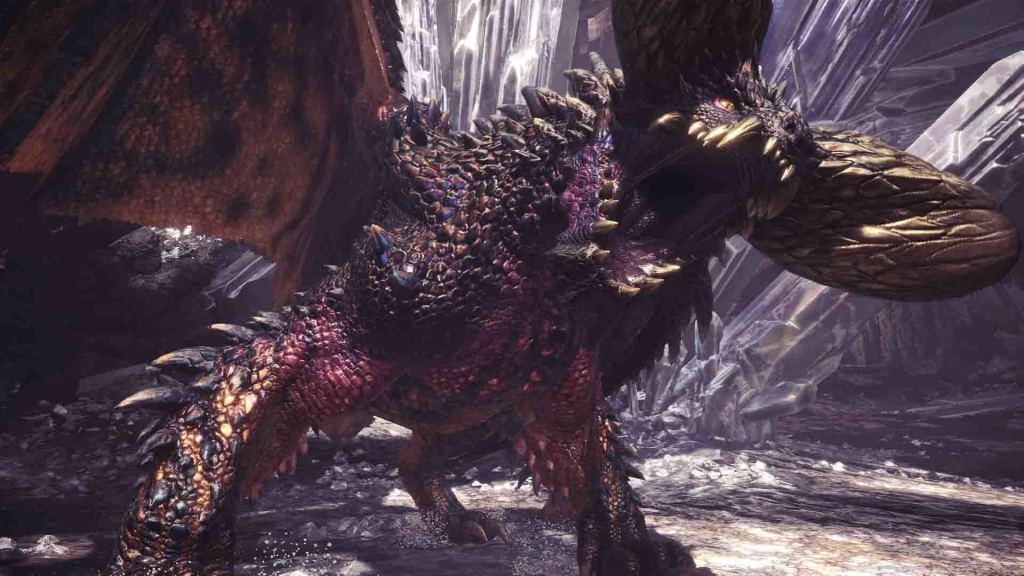 Aprovechando que acabamos de mencionar el elenco de clásicos que reaparecen en esta expansión, es un buen momento para abordar el paso en falso más destacable de la experiencia, es decir, el abandono casi absoluto del factor biológico. A cambio de traer de vuelta a algunas especies populares como el Tigrex y el Nargacuga —de los juegos de la PlayStation Portable—, el Brachydios —de Monster Hunter 3 Ultimate— y el Glavenus —de Monster Hunter Generations, título celebratorio de la saga por su decimoquinto aniversario—, el equipo realizó ciertos sacrificios. Quizás el más vistoso es que sus ostentosos diseños no siguen generalmente la tónica de lo que habremos luchado hasta el momento, es decir, que están un poquito fuera de lugar en los mapas de World. Cuando ponemos al lado a un tiranosaurio escupefuego que tiene una espada por cola al lado del Odogaron que, por fantástico que siga siendo, tiene un aspecto explicado por el entorno en el que reside y que se ha adaptado perfectamente al mismo, la disparidad es evidente. Además, rompen la regla de habitar zonas específicas que había dado mucha personalidad al repertorio hasta el momento, pues la mayoría de ellos son lo que se considera como invasores. Ni siquiera las caras nuevas se salvan de esta extraña tendencia, como ocurre con la subespecie eléctrica del Anjanath o el Banbaro los cuales, pese a cromática y físicamente tener mucho más sentido como residentes fijos del Arroyo de Escarcha, pueden vagar tan anchamente por el desierto del Yermo de Agujas.