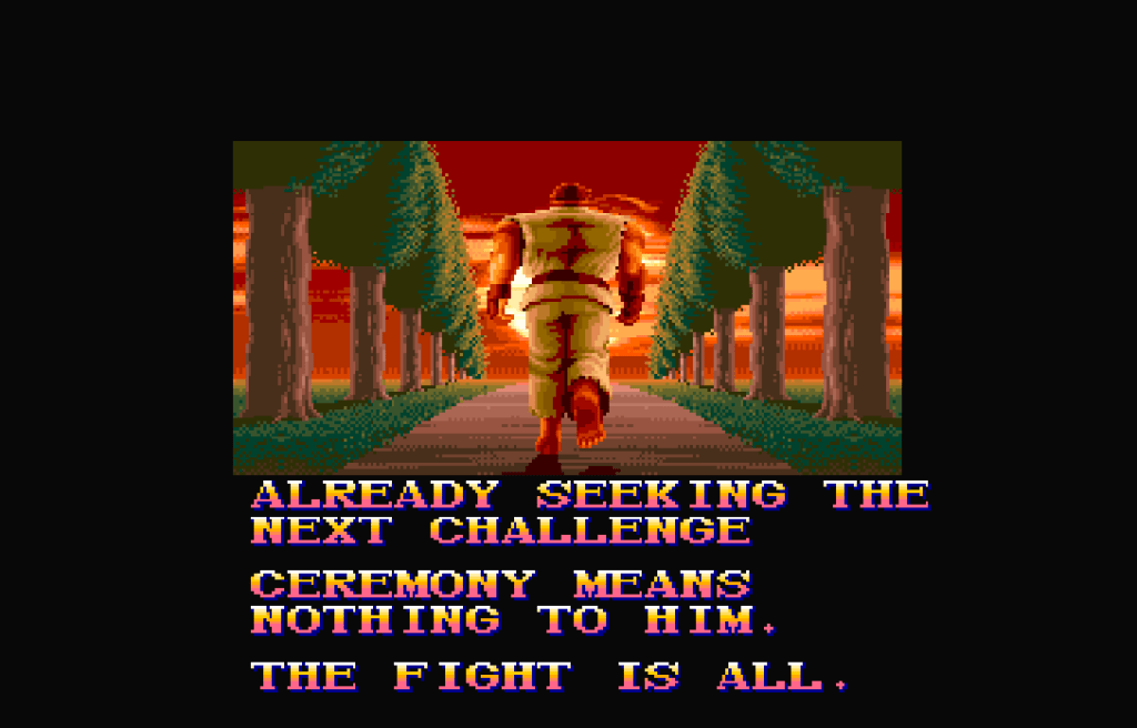 Una vez más, no es de extrañar que Ryu sea el rostro de los juegos de pelea, pues es sinónimo de competición sana y su mensaje va más allá del género de estos juegos. Debemos dar lo mejor de nosotros mismos, entendiendo que compartir algo así con alguien es chocar nuestra alma con la suya, sin dejarnos llevar por el odio, la envidia o el orgullo. Aprendemos algo nuevo de cada persona, a veces más de una cosa. Es el modo en el que Ryu vive, pues siempre hay que recordar que «la respuesta se halla en el corazón de la batalla».