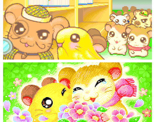 De aquí en adelante, se desarrolla la aventura de los hámsteres para conseguir los colores. Esto se realiza jugablemente a través de distintos minijuegos, algunos obligatorios dentro de la historia y otros opcionales. Un apartado interesante de éstos es que estos son únicos para cada personaje, es decir, cada uno solo lo puede realizar un hámster del grupo, en concordancia con su personalidad y sus puntos fuertes. Desde tocar el piano, pasando por identificar vacas, ayudar a un científico a ordenar colores en tubos, usar una pelota de béisbol para cruzar un charco y hasta pelear contra unos pollos por turnos, como si de un RPG se tratase. Estos variados juegos cumplen con su función, es decir, ser divertidos y entrañables para el jugador. Con los puntos que vayamos consiguiendo, se nos recompensará con pegatinas que tendremos que pegar en ciertas plantillas. Esta misión no es obligatoria —excepto en el postgame, donde para avanzar en un punto nos pedirán tener 200 pegatinas—, pero se trata de un apartado secundario interesante, junto con los dibujos, unas ilustraciones que puedes conseguir y colorear a tu gusto. Estas dos actividades secundarias refuerzan aún más uno de los puntos fuertes de este juego, el apartado visual.