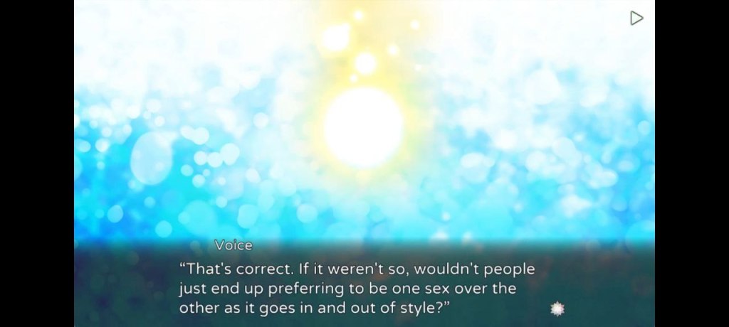 Ya casi al final del juego descubrimos que el gato con el que han estado jugando las chicas todo este tiempo no era ni más ni menos que Sora reencarnado tras morir siendo un niño. El minino se ve envuelto en un accidente de tráfico y su alma acaba siendo pescada por un ermitaño con poderes de deidad. Aquí comienza la verdadera fiesta, pues Sora quiere pedirle renacer como mujer para así poder estar con las chicas que tanto aprecia. A lo que el Dios le contesta que eso no es posible puesto que todas las almas tienen ligado un sexo específico. No solo hablamos de sexo y no de género, sino que la cosa degenera aún más y la deidad le confiesa a Sora que no sería viable que la gente pudiese cambiar de sexo porque si no estarían haciéndolo cuando quisieran a modo de capricho. Cuando pensábamos que no podíamos llevarnos más las manos a la cabeza, la deidad prosigue y añade que lee los comentarios terribles que hay sobre las mujeres online, pero claro, que cuando un hombre no consigue encontrar trabajo a la primera su vida está acabada, pero la mujer siempre tendrá la oportunidad del matrimonio y de ser mantenida si esto no le sale bien. Para más inri, estos comentarios nunca son criticados de ninguna manera, ni explícita ni implícitamente, solo se leen como el más terrible cuñadismo. De hecho, al no poder elegir solo una de las capturas, os dejamos con todas en su máximo esplendor.
