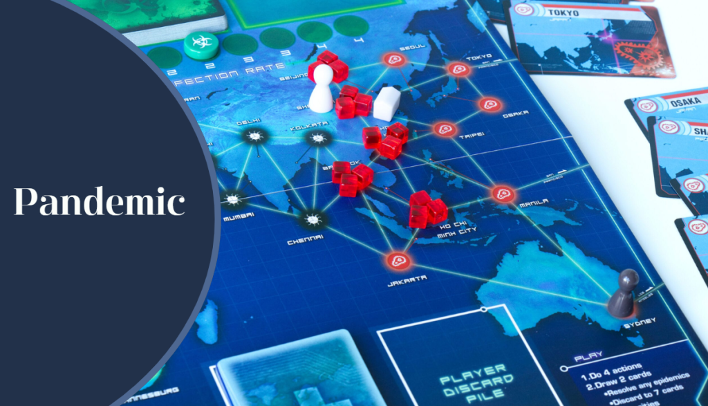 Pandemic es, posiblemente, uno de los eurogames favoritos del autor de este artículo —de hecho, sus tres versiones legacy se encuentran en los puestos 2, 53 y 61 de BoardGamesGeek a fecha de redacción—. Cuatro virus diferentes están infectando la tierra y está en vuestras manos evitar que la población caiga presa de esta plaga. Para ello, varios expertos en diversos campos pondrán sus habilidades al servicio del bien común con tal de poder parar esta horrible situación que, hasta hace unos años, parecía pura fantasía. Partidas de menos de una hora, una rejugabilidad bastante amplia, así como muchas expansiones y diversas versiones harán que cada partida a este juego se sienta completamente fresca.
