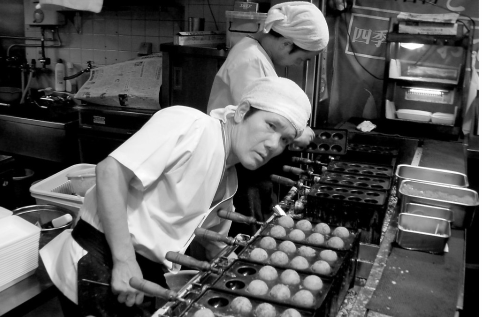 Este plato tiene su origen en la ciudad de Osaka, donde a día de hoy estas delicias de pulpo son extremadamente populares. A partir de 1935, se empezó a hacer sonar el nombre de un vendedor de comida callejera llamado Tomekichi Endo. Su idea era combinar nuevos ingredientes con al característico de la época, la harina de trigo, que se había vuelto más común debido a la escasez de arroz que había en aquel momento. Volviendo a Tomekichi, sabemos que desde que abrió su propio puesto estuvo innovando con la receta del okonomiyaki —una masa de harina bien condimentada y rellena del ingrediente que se desee — y pensó en la practicidad de servirla en forma de bolas, para que fuera más fácil de transportar y comer. Unos años más tarde, debido a un aumento de la pesca del pulpo en el Mar de Interior de Seto, Tomekichi decidió introducir trozos de pulpo en el interior de estas bolas y, rápidamente, esta sencilla delicia se popularizó durante la segunda mitad del siglo XX, hasta alcanzar al actual estatus de uno de los más famosos representantes de la gastronomía japonesa de cara al resto del mundo.
