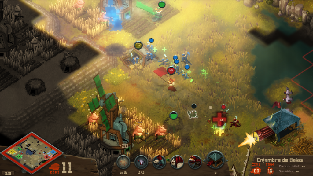 Desde un punto de vista jugable, su aspecto más original es que, en lugar de dirigir a todo tu ejército a la vez, controlamos a un único personaje que es el líder de su respectiva facción. Con él irás construyendo granjas donde los cerdos conseguirán comida —el único recurso que existe en el juego—, y distintas madrigueras que irán generando a las diferentes unidades que forman tu ejército. Tu personaje lleva consigo un estandarte con el que el que podrá convocar y dar órdenes sencillas a tus tropas, que atacarán automáticamente a los enemigos y estructuras que se encuentren.
