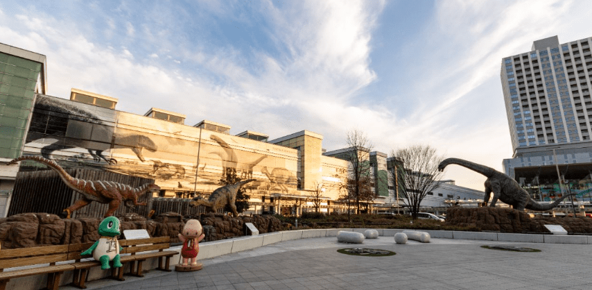Este trozo de tierra, que una vez fue parte de Asia —se estima que Japón se separó del continente hace unos 13.000 años, tras la glaciación más reciente—, se ha conservado relativamente bien gracias a la formación de lechos óseos. Este fenómeno geográfico consiste en una acumulación de fósiles, pegados entre sí en bloques de tamaño variable. Si tenemos en cuenta, además de lo ya mencionado, el hecho de que estos estratos se encuentran en zonas fácilmente accesibles para las labores de excavación, nos podemos ir haciendo a la idea de por qué este área ha sido un foco de investigación tan prominente desde los años ochenta. Todo comenzó con el descubrimiento de unos dientes de cocodrilo y de terópodos, el cual despertó el interés de la comunidad científica y condujo a expediciones a gran escala, que se han ido realizando desde 1989. En consecuencia, el museo de Fukui contiene una de las colecciones de dinosaurios más destacables del mundo, tanto por su numerosidad como por el sorprendentemente buen estado de algunos hallazgos. Las instalaciones contienen la típica exposición de esqueletos, animatrónicos y proyecciones, así como una excursión a una cantera cercana, donde los visitantes pueden observar de cerca el arduo trabajo realizado por los paleontólogos a la hora de desenterrar el pasado de nuestro planeta.