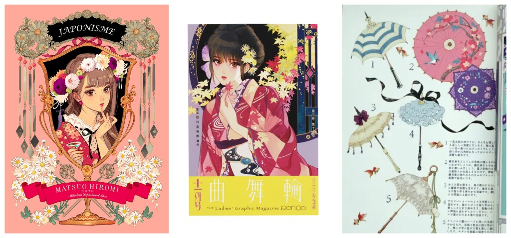 Matsuo es una ilustradora japonesa que se dedica sobre todo a las cubiertas editoriales, pero tiene algunos libros propios, como por ejemplo El vals de los grandes almacenes, publicado en 2016 y que alcanzó un gran éxito. Matsuo es una gran apasionada de los kimonos y de la moda, y esto se refleja perfectamente en sus trabajos, plasmando con gran detalle y esmero todos los componentes de los looks que nos muestra en Rondo. La autora utiliza un recurso muy curioso e interesante para darle un hilo conductor a todas las ilustraciones recopiladas, y es que Rondo es el nombre de una revista ficticia —ideada por la propia Matsuo— que cumple su centésimo aniversario y que decide realizar una recopilación de sus ejemplares más destacados a lo largo de la historia de ésta.