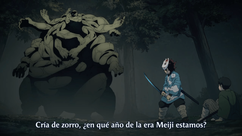 La clave la da el “demonio de las manos”, quien fue capturado por Urokodaki durante el periodo Keiō y que acecha desde entonces en la montaña donde se celebra la Selección Final. Cuando el demonio pregunta a Tanjirō en qué año de la era Meiji se encuentran, monta en cólera al descubrir que Japón ha cambiado de nuevo de era mientras él seguía ahí encerrado, tras lo que asegura llevar 47 años encerrado en aquella montaña.