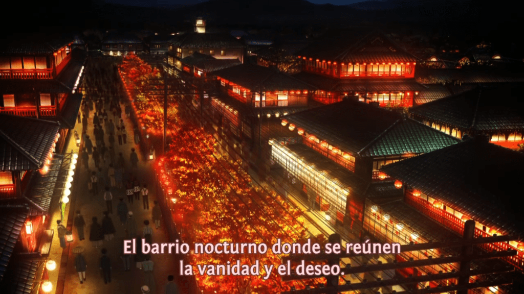 Por medio de la representación de este espacio, Kimetsu no Yaiba intenta romper con la romantización que aún a día de hoy existe en torno a sitios como este, donde el aparente lujo, las coloridas prendas y el maquillaje solo eran una cortina detrás de la cual subyacía un contexto de trata de personas y violencia contra las mujeres absolutamente aberrante.