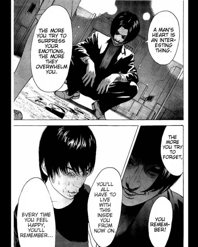 Pero vayamos por partes: la primera serie de As the Gods Will bebe más del típico survival y nos deja con muchas incógnitas (además de con un impactante giro de guion al final); como curiosidad, también cuenta con una adaptación a película live action dirigida por el legendario Takashi Miike, aunque toda la parte del final es distinta en el filme. Es en la segunda entrega de la serie donde realmente el autor comienza a centrarse en temas más psicológicos, planteando cuestiones como hasta dónde es capaz de llegar alguien para sobrevivir o la dicotomía esperanza/desesperación y a lo que conduce cada una de ellas, que son una obsesión y una constante en su obra. También en esta segunda parte encontramos personajes más interesantes; destacamos a Kiyoshiro Ushimitsu, que tiene una peculiar obsesión con el protagonista. Y hablando del protagonista, Kaneshiro parece sentir debilidad por los personajes principales analíticos y racionales, pues Yasuto Akashi, la figura protagónica de la segunda saga de As the Gods Will, no puede dejar de recordarnos a Yoichi Isagi de Blue Lock.