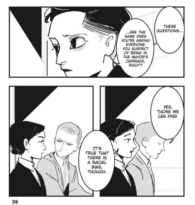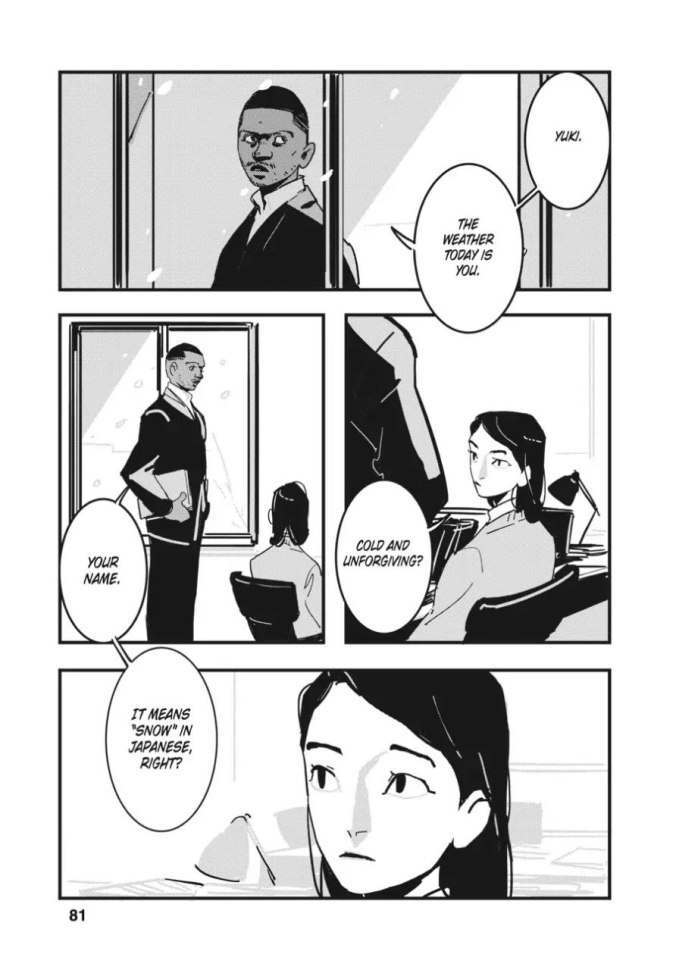 Shima Shinya representa a personajes que son presas de un sistema que se ven obligados a servir. Uno de los puntos más fuertes en este aspecto es Yuki, compañera de Ellis que proviene de Japón y se ve forzada a hacerle frente a la misoginia y racismo por parte de compañeros de trabajo en una posición más privilegiada. Su amistad con el detective es un aspecto muy interesante del manga por este mismo motivo, ya que ambos estrechan lazos a partir de mostrar empatía con sus situaciones, entendiéndose sin juzgar.