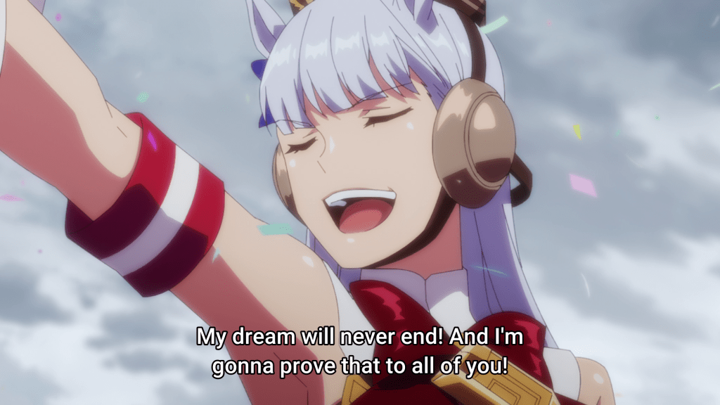 Y no contentos con el apartado visual, en muchas ocasiones las Uma Musume imitan la personalidad de los caballos a los que referencian; es el caso de la ya mencionada GolShi. También hay eventos que ocurren en las carreras de la serie que reflejan cosas que ocurrieron en la realidad. Otra de las Umas más populares es Haru Urara, basada en una yegua famosa por haberse retirado sin ganar ni una sola carrera (recientemente fuimos sabedores del fallecimiento del animal), pero que aun así contó con el apoyo incondicional del público, y lo mismo ocurre con su versión dentro del universo de Uma Musume.